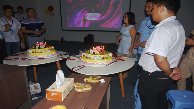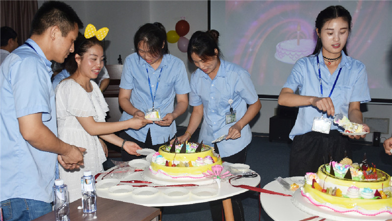 寿星们吹蜡烛许愿,大家齐唱生日歌,为寿星们送上真诚的祝福。声声的祝福,深深的情谊,使在场的每一个人都感受到生日会带来的喜悦,感受到公司深情关怀,感受到这个大家庭的温暖和祝福。