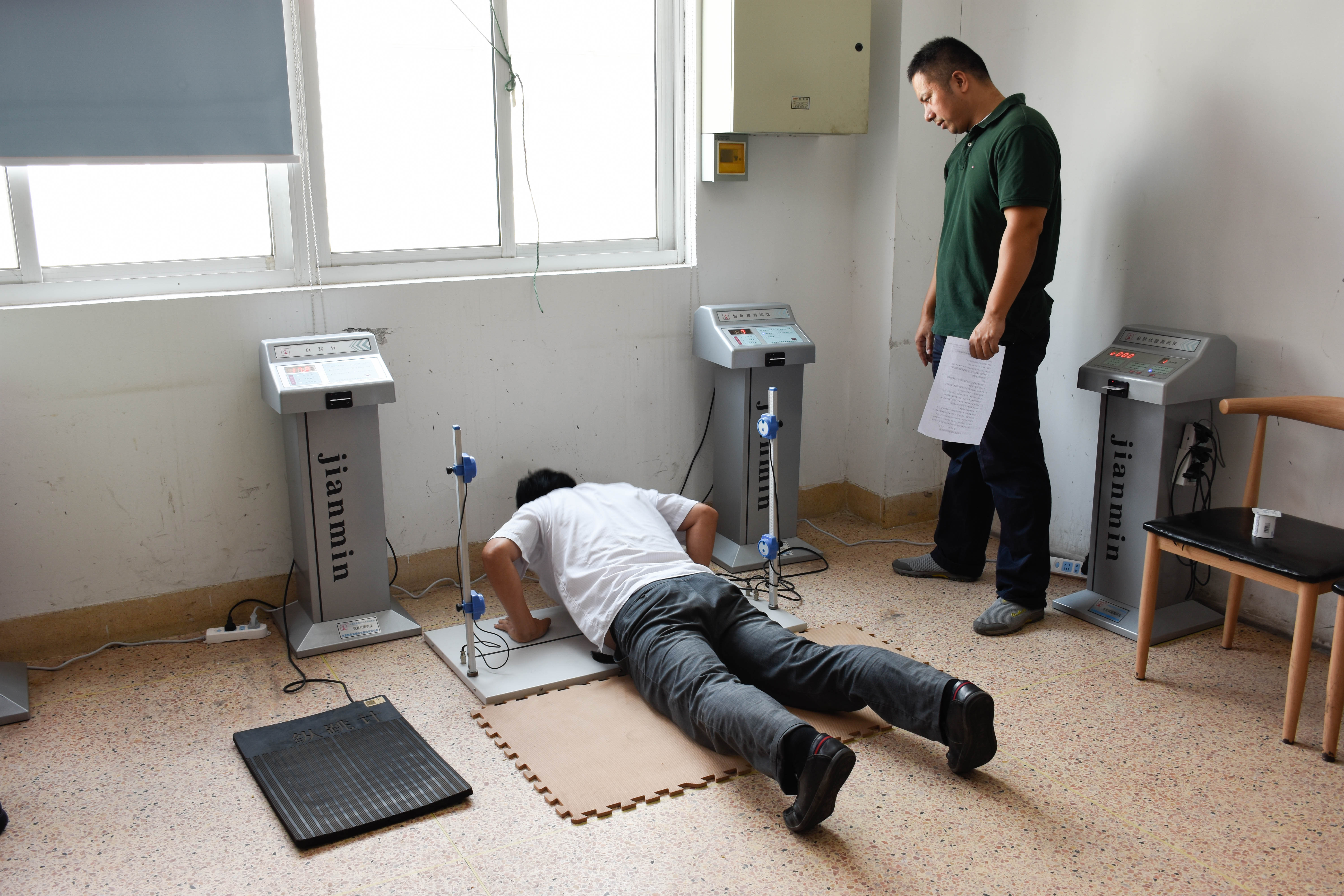 本次体质监测项目包括身高、体重、肺活量、握力、俯卧撑、反应时、闭眼单脚站立、纵跳等11项指标进行了综合评估。