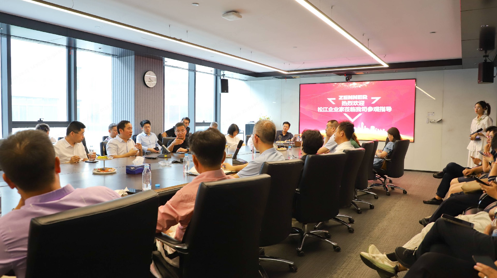 8月21日,上海市松江区工业企业联合会(协会)、松江区外商投资企业协会组织20余家企业代表莅临好博体育,开展“培育新质生产力,构筑新型工业化”主题系列活动暨“装备制造企业之行”的参观考察,并进行座谈。