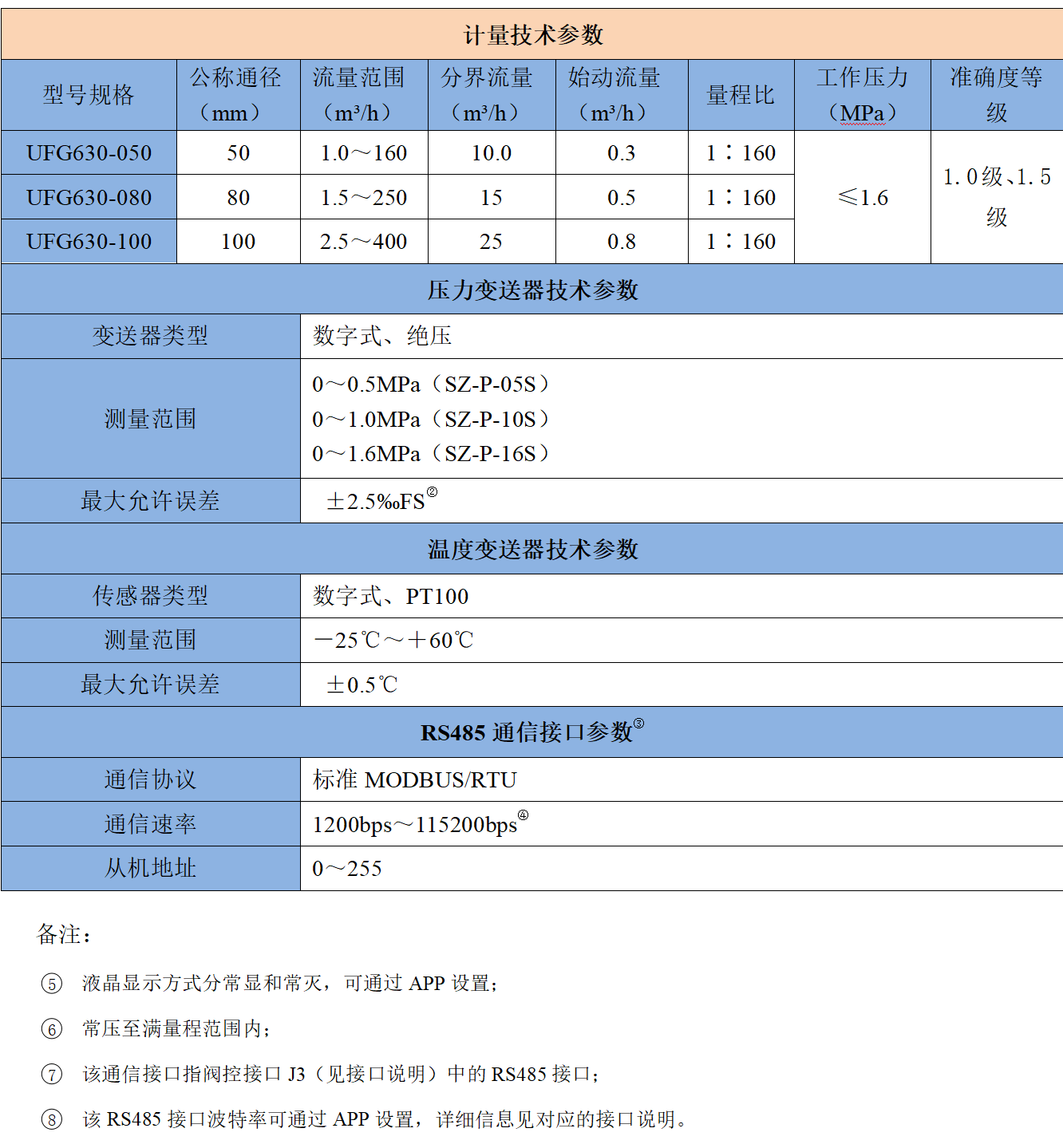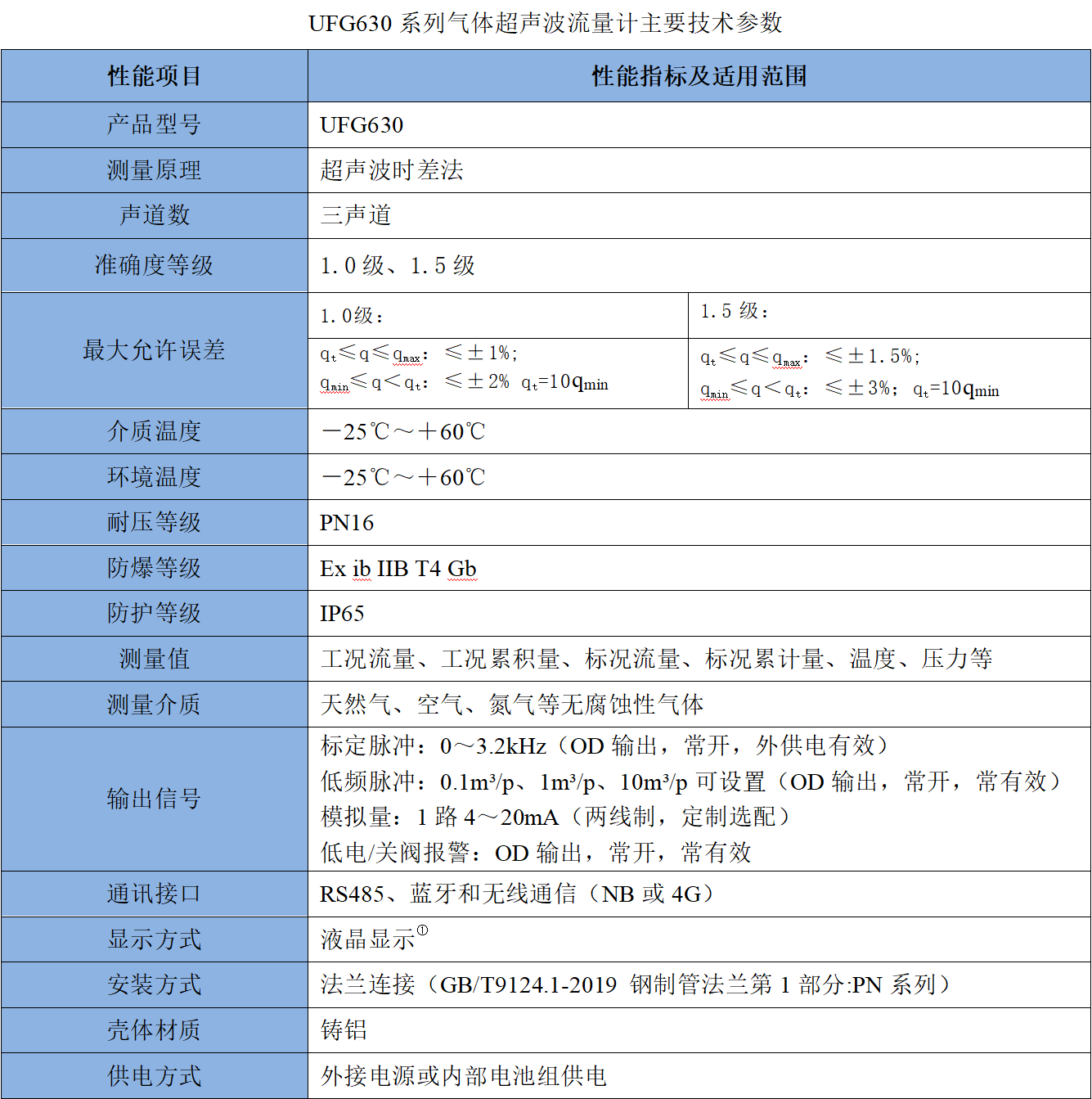 ● 始动流量低,UFG620系列DN50低至0.2 m³/h;UFG630系列DN50低至0.3 m³/h;